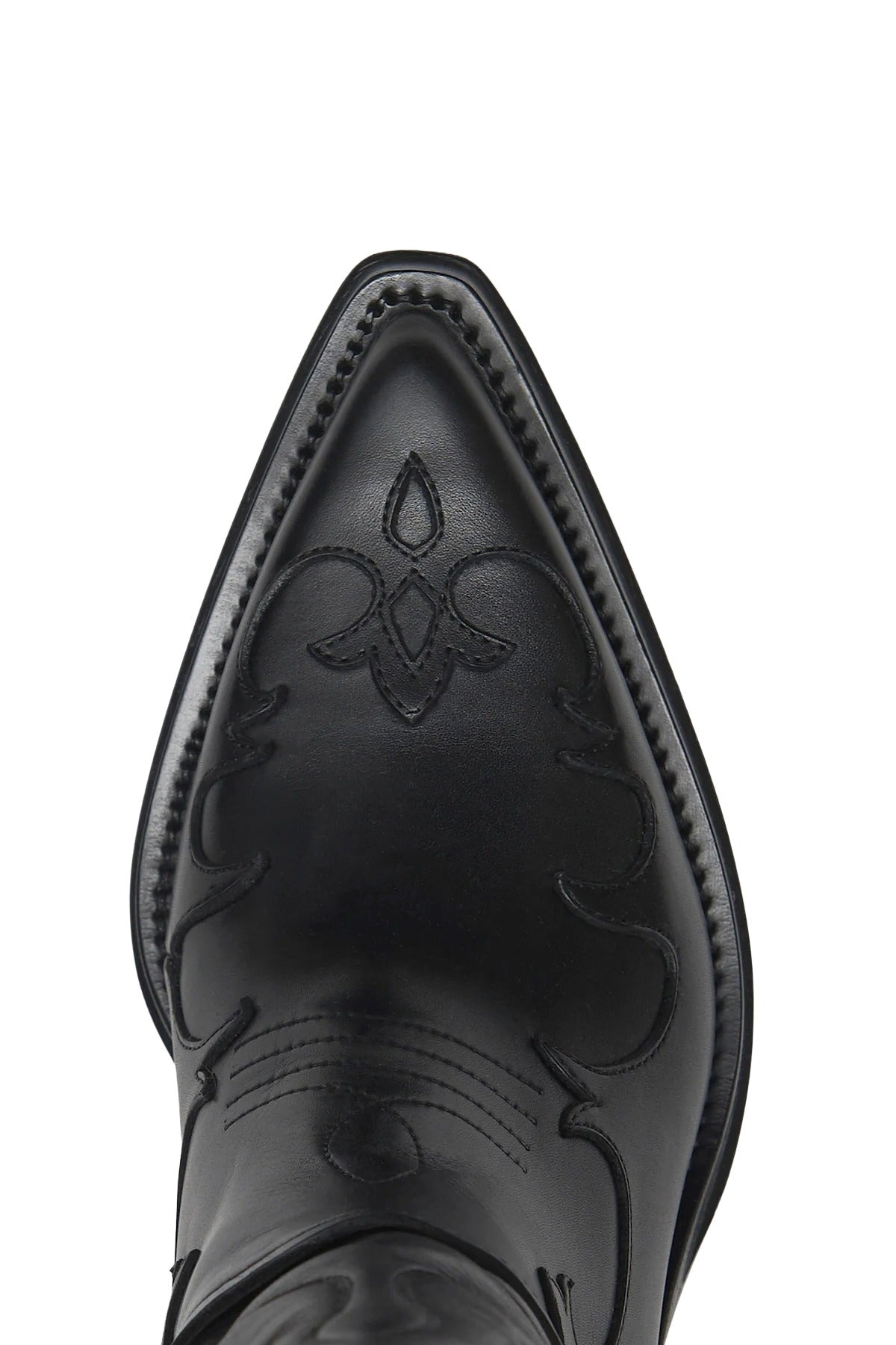 INFO A new cowboy boot, named the Capitana, is revisited with sleek modern lines and a layered sole - featuring a block heel with a flame-inspired details on the shin.