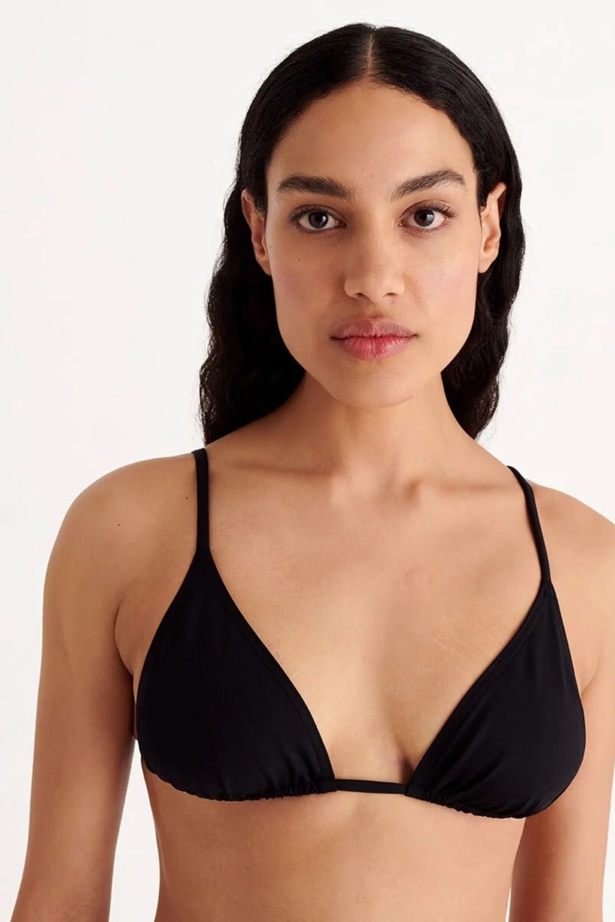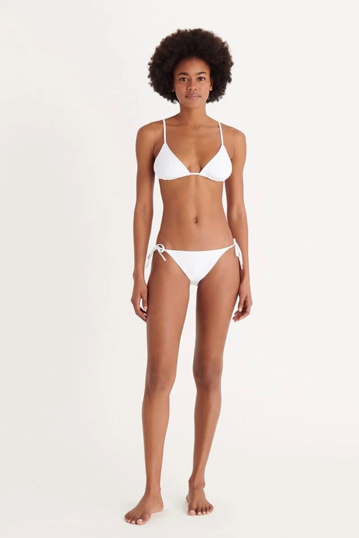 Eres Mouna Petit Triangle Top is a triangle bikini top with a thin drawstring tie is a timeless summer basic. Its thin multiway straps can be worn straight or around the neck.