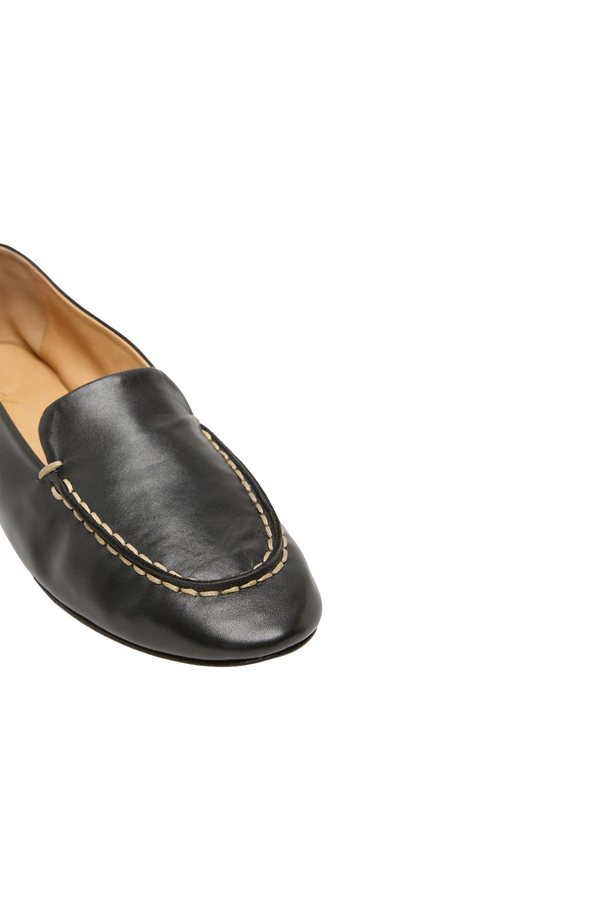 INFO Mandolo Loafer in shiny smooth leather An evolution of the iconic Mando derby, these loafers are crafted from ultra-soft leather, offering maximum comfort and designed for lasting durability. The model features a thin leather sole with a slightly rounded heel. It is also characterized by stitching with a contrasting tone.