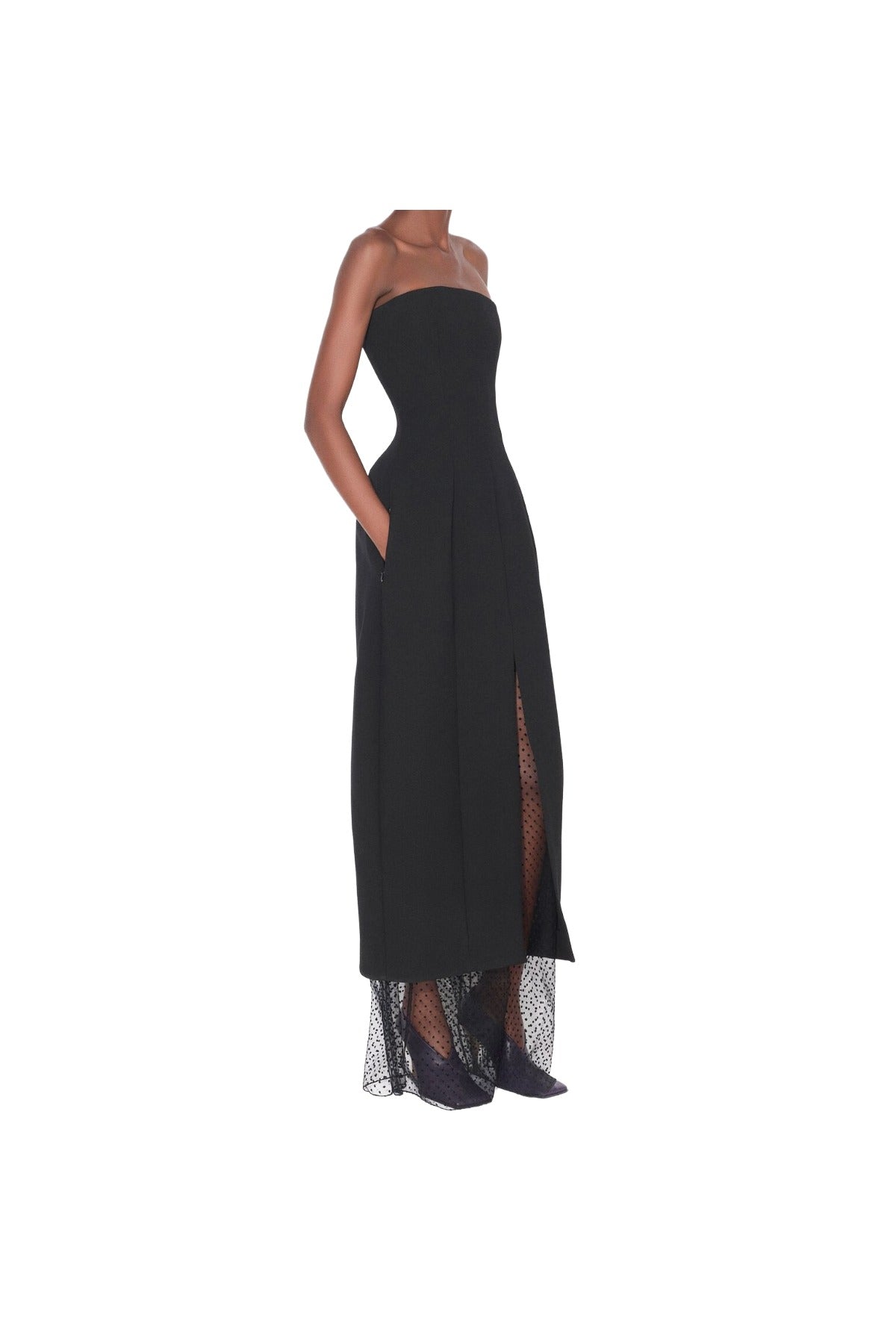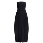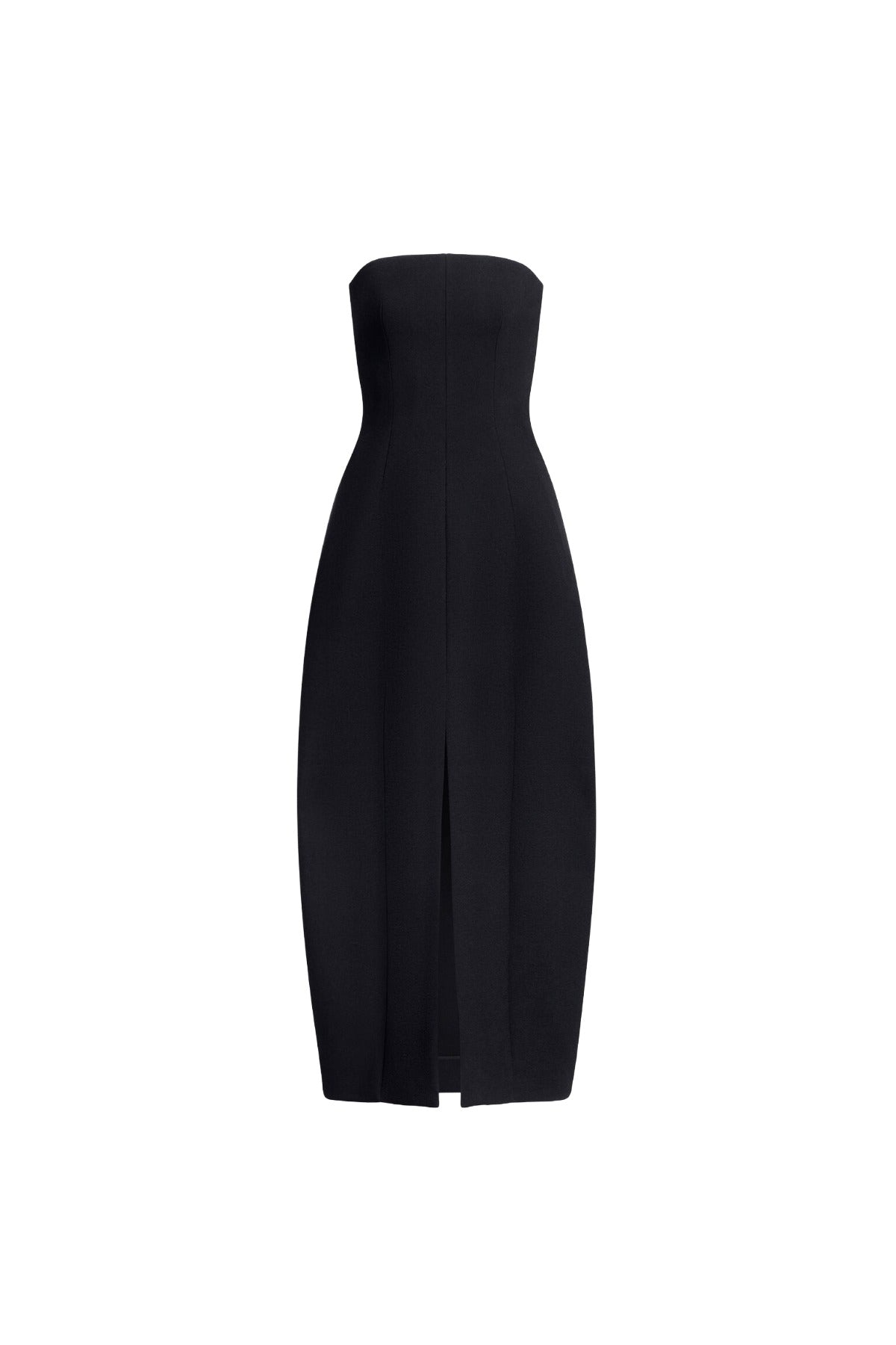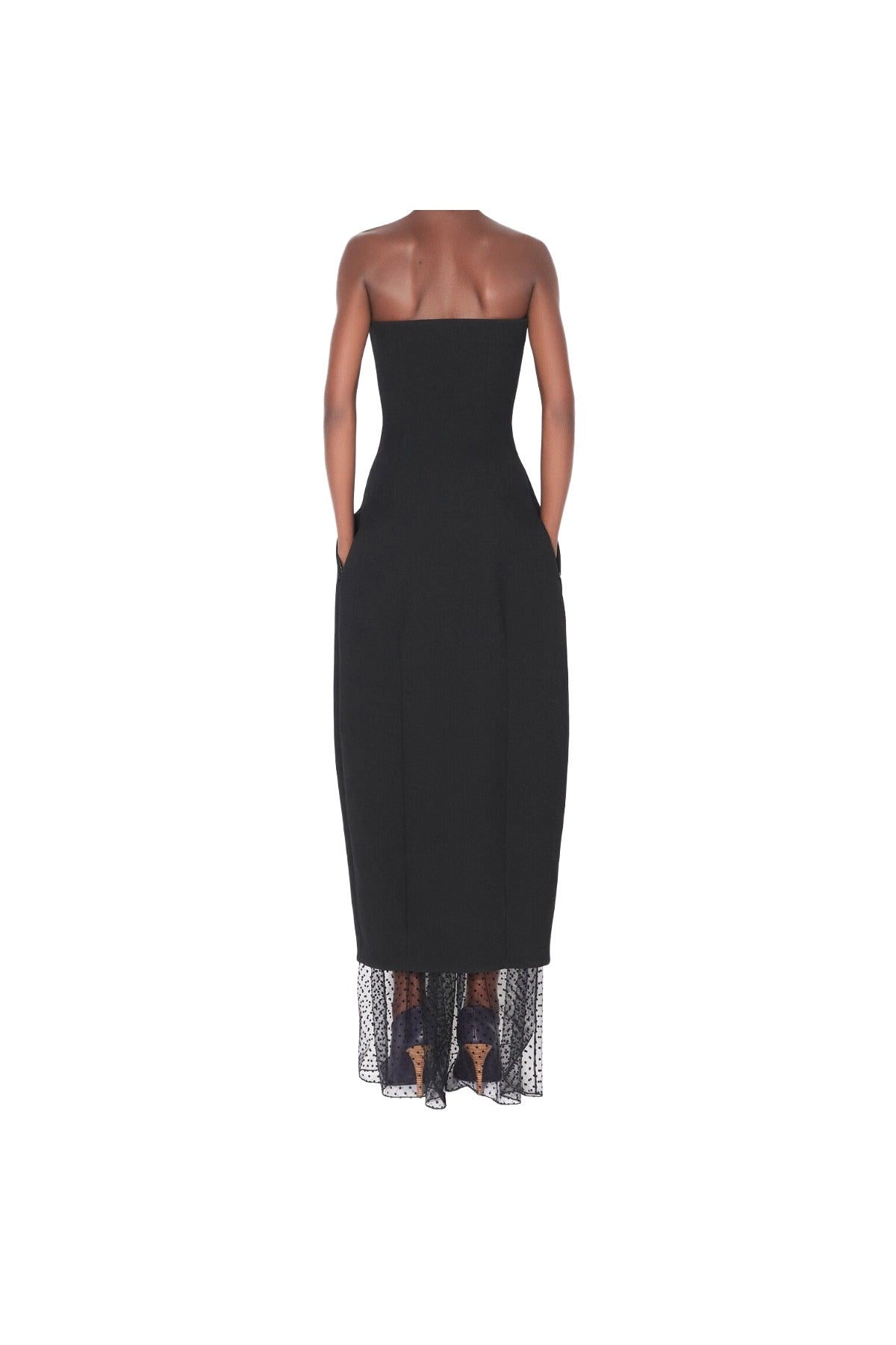 Alaia Round Dress is part of the Winter 26 Collection. The Alaia Round Dress exemplifies refined minimalism through its architectural construction and premium Italian craftsmanship. This strapless silhouette features a textured wool composition that creates subtle visual depth while maintaining an elegant, understated aesthetic. The long, sleeveless cut showcases the dress's defining round silhouette—a signature design element that flatters the figure through its carefully proportioned volume and structure. The fitted bodice is precisely cinched at the waist, creating a striking contrast that emphasizes the wearer's natural contours while the voluminous skirt flows gracefully to full length. An invisible side zip closure ensures a seamless appearance, preserving the dress's clean lines and sophisticated profile. Constructed entirely in Italy, this piece reflects the meticulous attention to detail and quality standards synonymous with European luxury fashion. Ideal for formal occasions, evening events, or anyone seeking a statement piece that balances bold silhouette with timeless elegance.