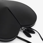 Heart bag, a simple cut in the leather creates volume and pure shape, zip closure, adjustable strap. |
