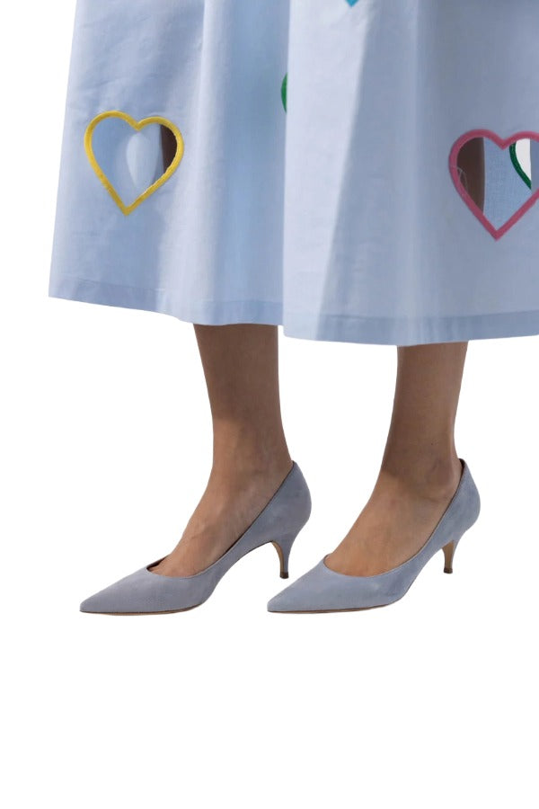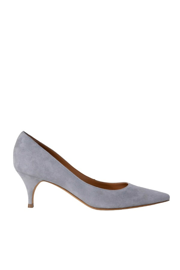 Beautifully pointed pump on an 60 mm heel in suede, truly comfortable, give to each of your outfits the right kick – from an elegant look to a pair of jeans and a white T-Shirt.