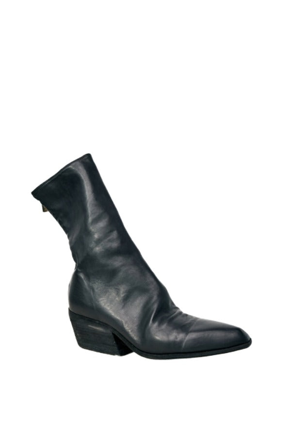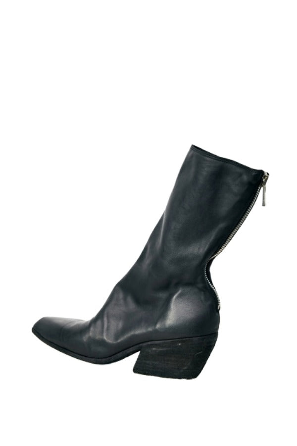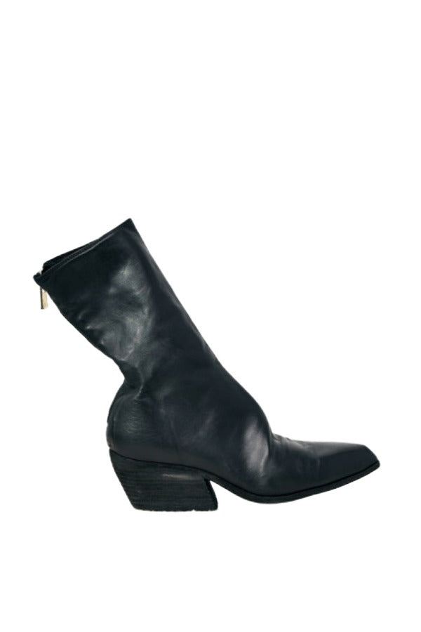 INFO Back Zip Boot from Guidi featuring rounded toe and sterling silver heel zipper- handcrafted |