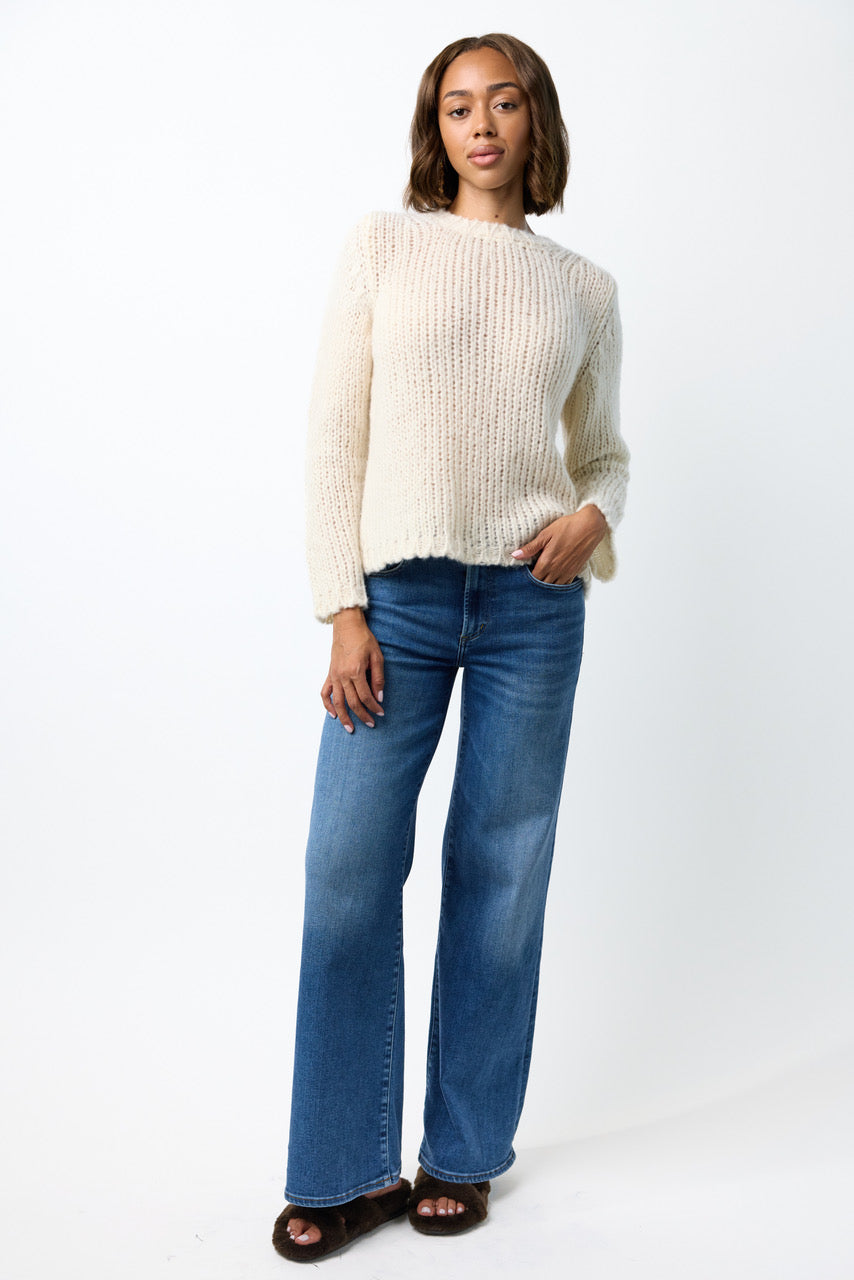 INFO The Lolli features an ultra-flattering mid-rise waist that sits higher up on the hip with an easy, relaxed wide leg. The 32" inseam lengthen the leg for a look that can be easily dressed up or down. This fit is true to size. Looks Like: True medium indigo with fading and whiskering |
