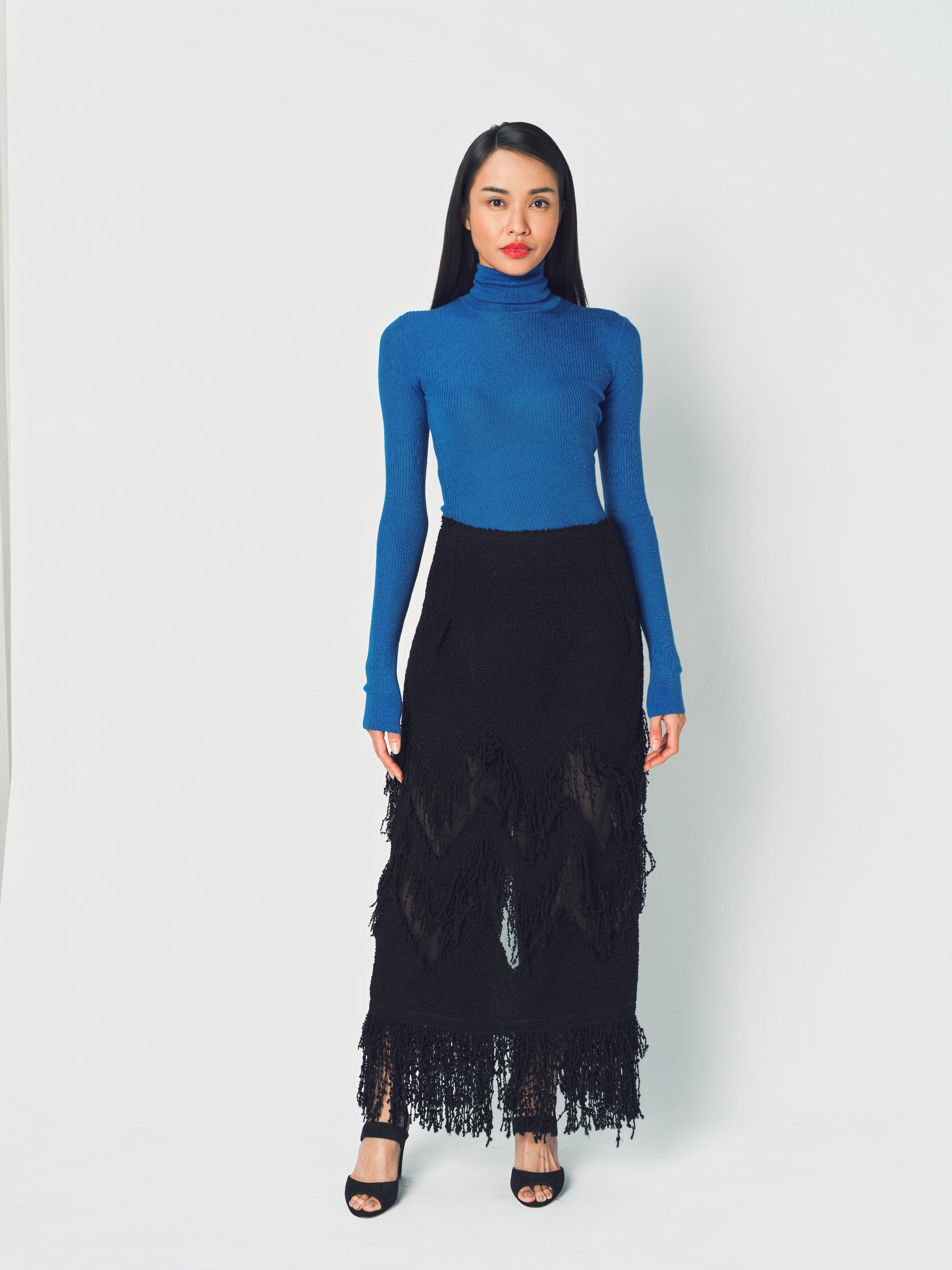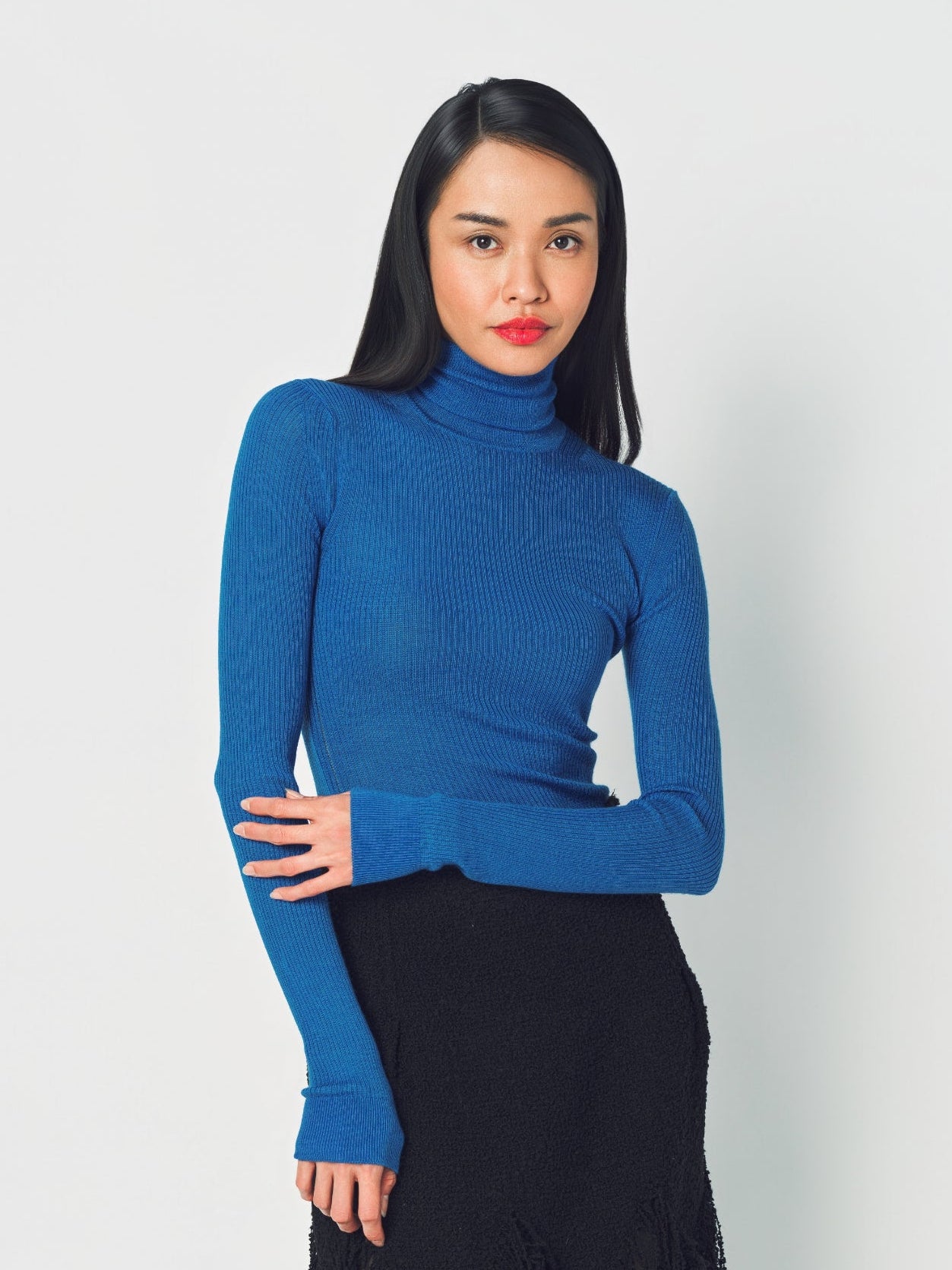 Lanvin Turtleneck Jumper in Silk, Wool and Cashmere is part of the Fall 25 Collection. This turtleneck sweater has been crafted with no seams and is designed to mold perfectly to the body's silhouette. The knit features a sumptuous blend of cashmere, wool and silk. Lightweight, yet soft and warm, it is the ideal choice for a winter day.