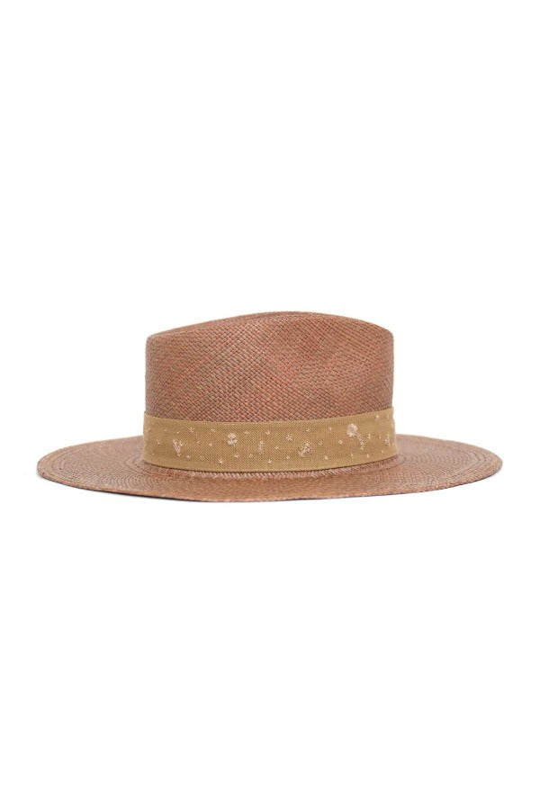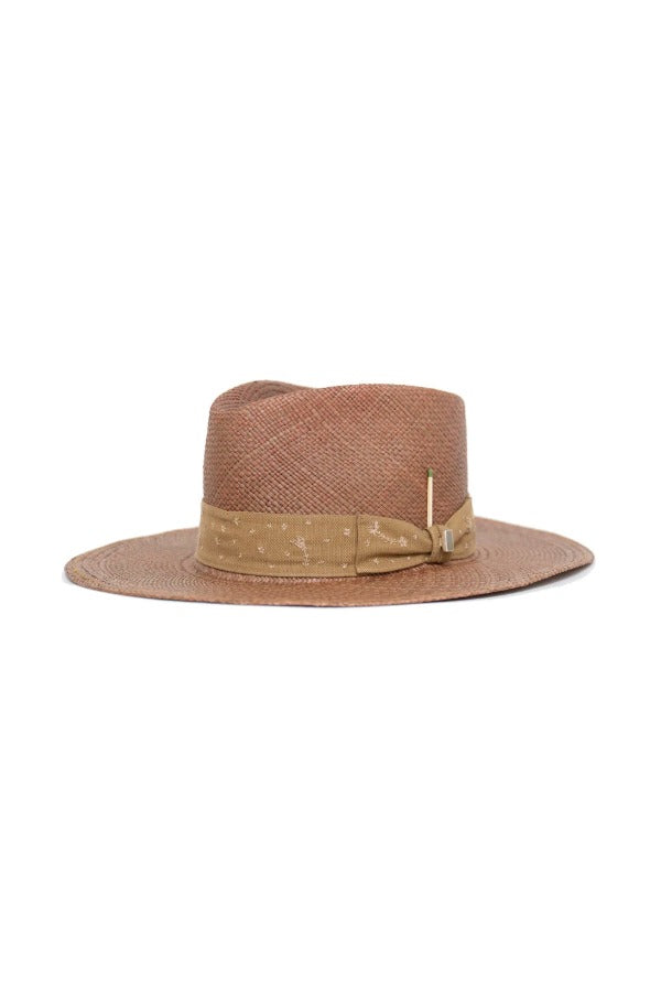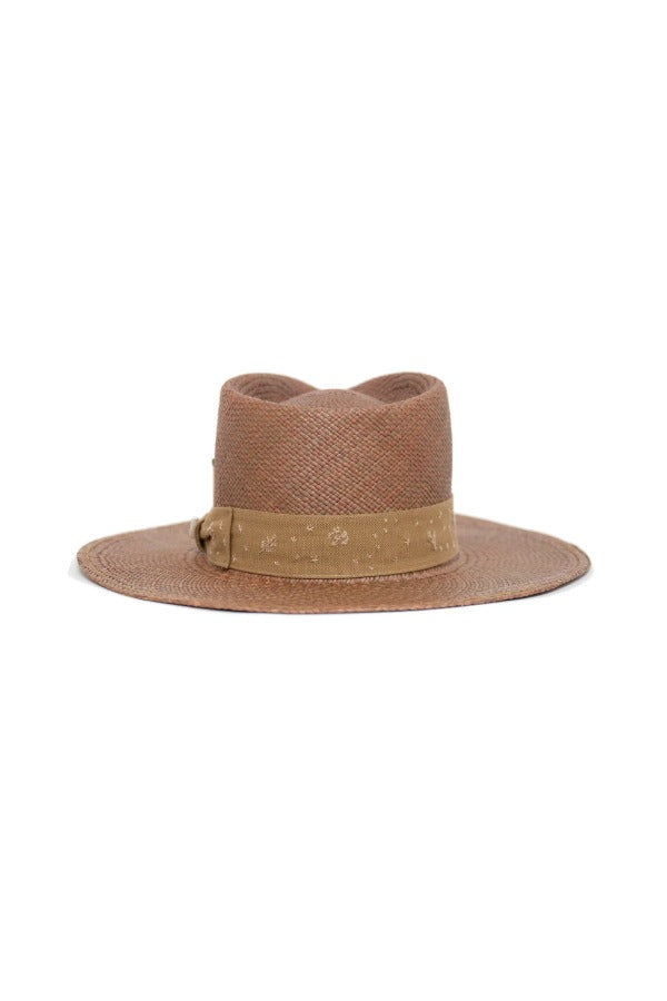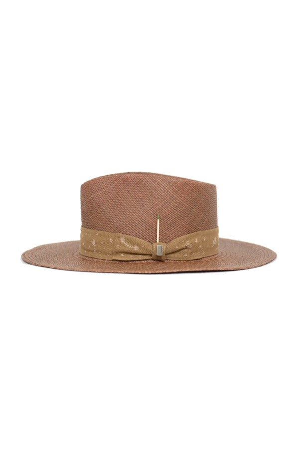 Nick Fouquet Desert Waning Straw Hat is part of the Fall 25 Collection. The Desert Waning Straw Hat offers a sophisticated blend of rugged elegance and artisanal craftsmanship. Crafted from faded olive straw, this distinguished hat features a finely hand-embroidered grosgrain band and a tasteful bow, adding intricate detail and texture. Its unique color palette and meticulous finishing make it a versatile accessory that complements both casual and elevated ensembles. Ideal for those seeking a statement piece with a refined heritage feel, this hat combines durability with refined style, elevating your look while providing sun protection in a lightweight, breathable design.