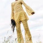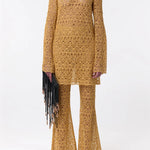 | Phoenix Flare Cropped Pant in Gold Silk Macrame Lace |