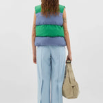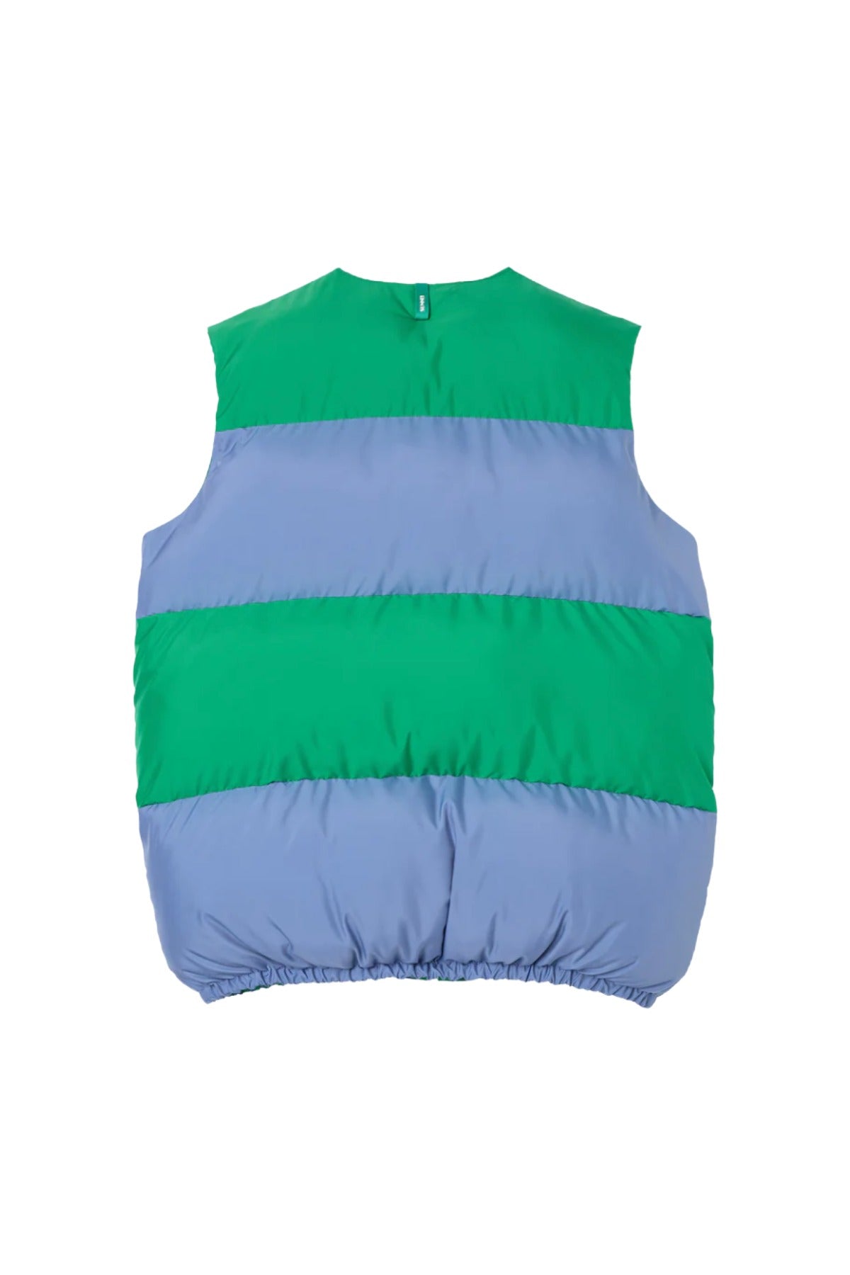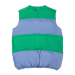 Sunnei Puffy Gilet is part of the Fall 25 Collection. Puffy gilet made with a linen blend and 100% recycled polyester filling featuring stripes with intarsia cut, adjustable hem, and SUNNEI branded silicon puller at zip closure.