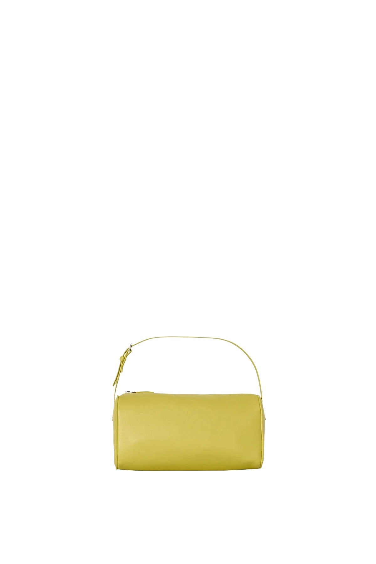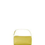 The Row is a top handle bag in buttery lambskin leather with softly rounded edges, leather piping, and adjustable slim leather strap.