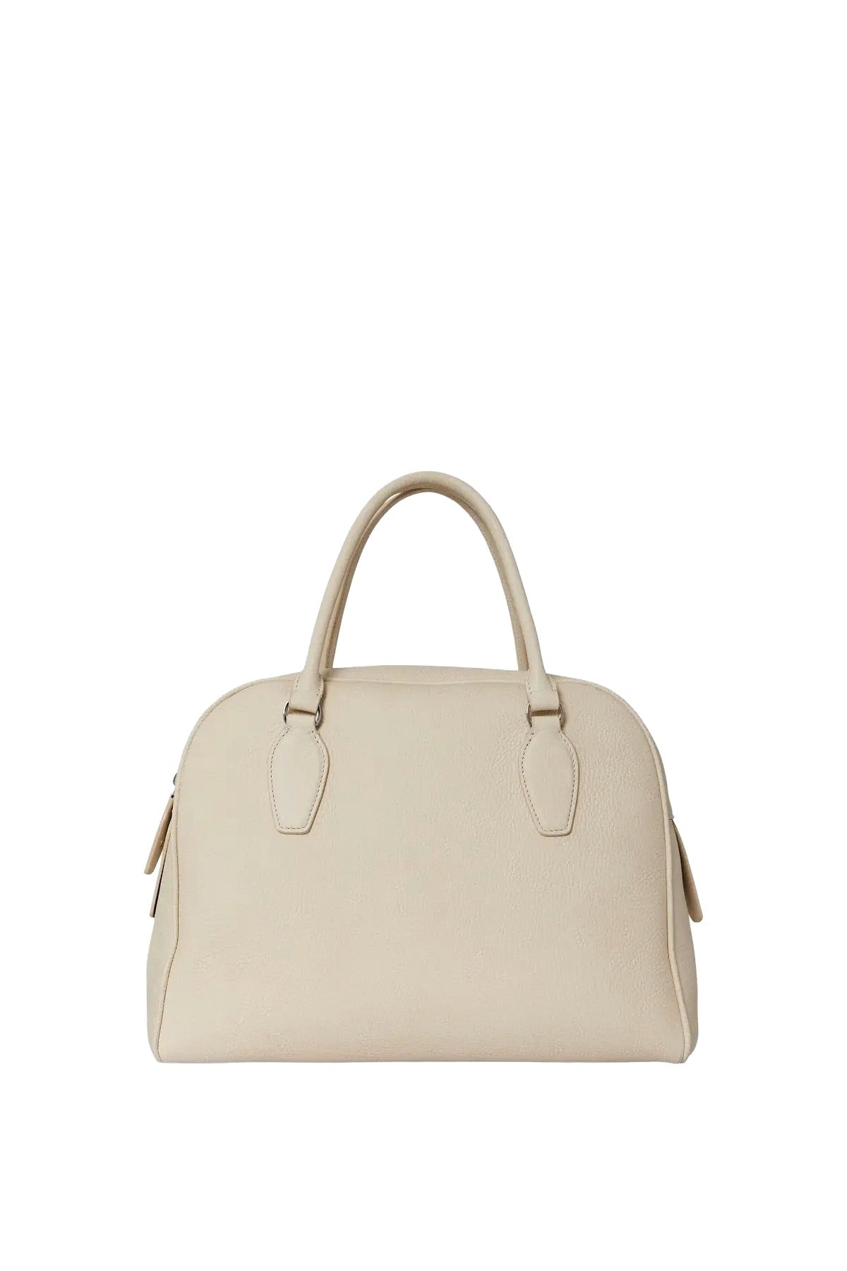 INFO Updated bowling bag in leather with tubular handles, branded metal padlock and key, and zipper closure. |