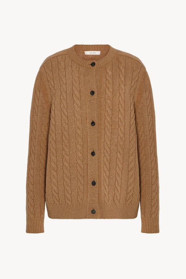 The Row Loneke Cardigan is part of the Fall 25 Collection. Classic cable-knit cardigan in textured wool with relaxed fit, front button closure, and ribbed neckline cuffs, and hem.