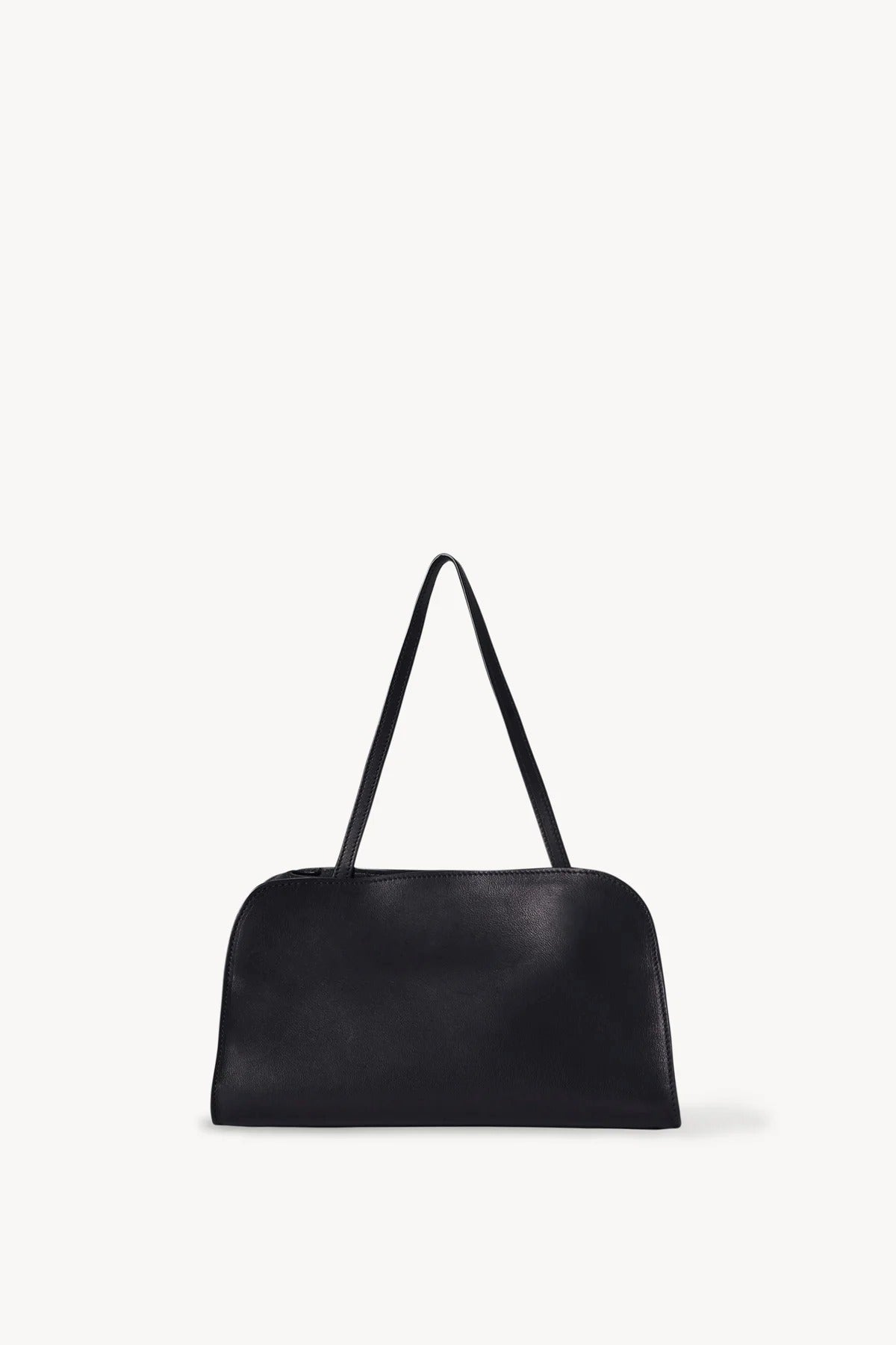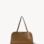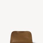 The Row Peggy Clutch in Saddle Leather is part of the Winter 25 Collection. Softly structured clutch in polished saddle leather with single shoulder strap and gusseted side panels. Untreated and drum-dyed, the leather develops character with time and use.